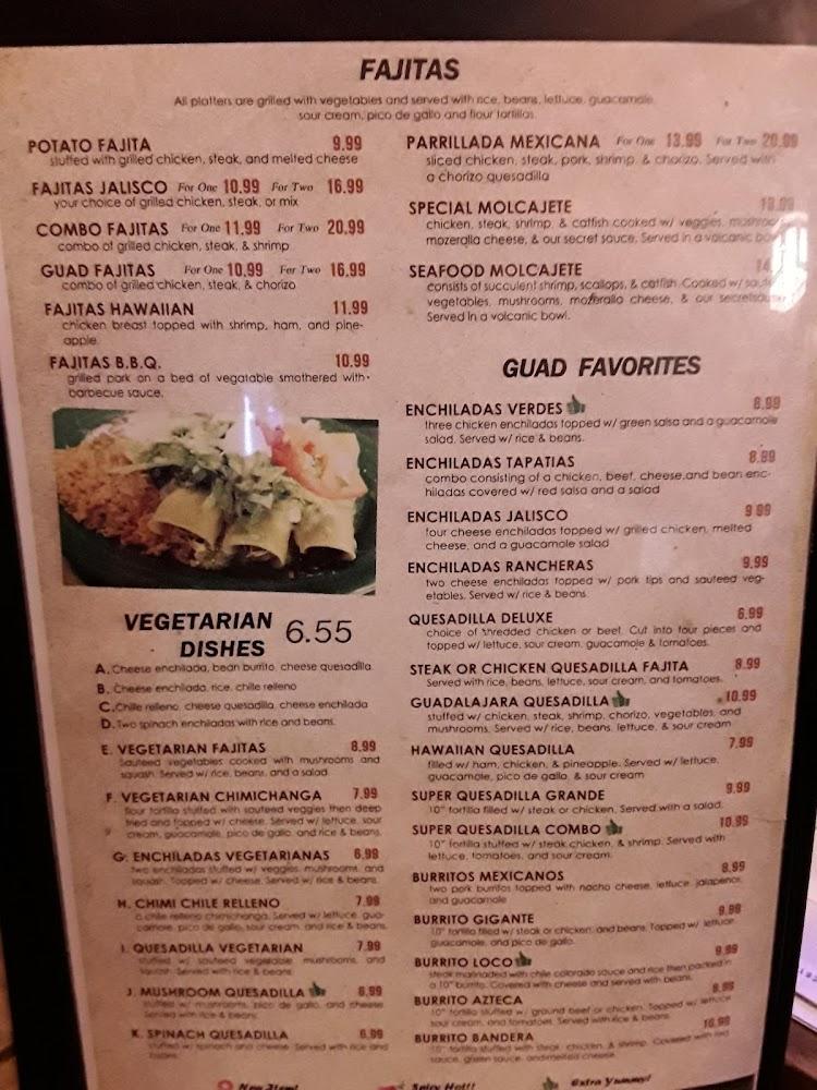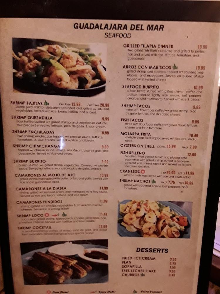 Guadalajara's menu features a wide range of dishes, highlighting fresh ingredients and authentic flavors. From seafood to steak, each category has at least twelve enticing options. Vegetarian and kid-friendly dishes cater to diverse tastes.