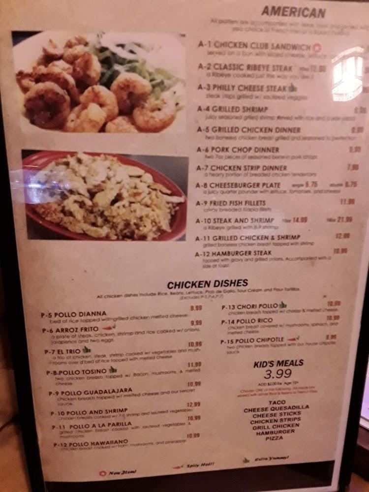 Standout items include the Chile Colorado, Steak Mexicano, and a variety of shrimp dishes. Desserts like Churros and Flan add a delightful end to your meal. Overall, the menu showcases the essence of Mexican cuisine in every bite.